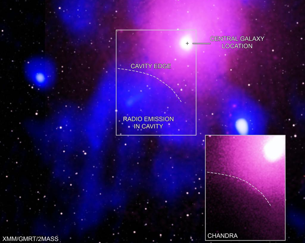 Astronomers needed to combine the X-ray information along with the radio data in order to clinch this finding. They discovered that a cavity in the hot gas, first seen in Chandra data in 2016, was filled almost perfectly with radio emission created by electrons that had been accelerated to nearly the speed of light. This allowed them to confirm that an explosion of unprecedented size took place in Ophiuchus.
